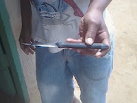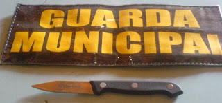Criança J.S portando uma faca para conseguir lanche na feira livre.
