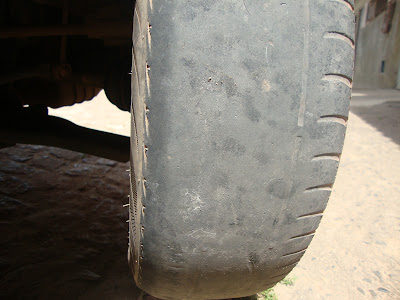 Um dos risco maior é a condição dos PNEUS que já tá aparecendo o ARAME, e que a qualquer momento pode vim estourar e provocar um GRAVE ACIDENTE.