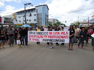 Com faixas e carro de som, os professores das redes públicas municipal e estadual, partiram em passeata pela avenida, reivindicando melhorias nas condições de trabalho, valorização da categoria com pagamento do piso nacional, e mais investimento dos recursos públicos na educação.