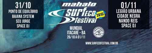 Eles se apresentarão no Mahalo Surf Eco Festival que acontece em Itacaré pelo terceiro ano consecutivo. No dia 31 de Outubro, no sábado, se apresentam: Seu Jorge, Ponto de Equilíbrio, Baiana System e Espaço DJ. Já no dia 01 de novembro o festival vem com Legião Urbana, 30 anos, Nando Reis, Cidade Negra e também contará com Espaço DJ.