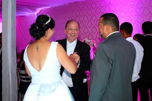 O casamento religioso aconteceu na Matriz de São Boaventura no início da noite de sábado e posteriormente foi comemorado pelas famílias, convidados ilustres e demais amigos do casal em uma recepção a beira da praia na cabana alegria de viver.