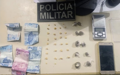 De acordo com informações da PM, a guarnição de serviço se encontrava em ronda, que ao perceber a presença da viatura, Vínicius tentou se evadir, mas foi alcançado pelos policiais. No momento da abordagem foi encontrado com o mesmo, 10 buchas de maconha, 30 pedras de crack, 01 aparelho celular, R$ 13,00 “treze reais” em espécie e 01 balança de precisão portátil.
