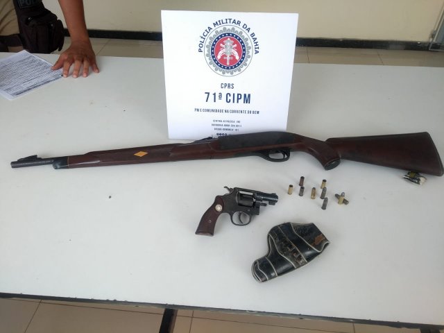 Com ele foi encontrado, um revolver calibre 32, marca Taurus, e um Rifle CBC semiautomático calibre .22, cinco cartuchos calibre 32, e quatro capsulas.