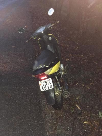 Dando continuidade a diligência a Guarnição do Peto da 71 CIPM, por volta das 18:40 recebeu informações dando conta de que uma motocicleta havia sido abandonada na região conhecida como campo do arroz , Rod. Canavieiras imediatamente, a guarnição deslocou até o local e constatou o fato.