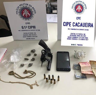 Ao final da operação policial, foi apreendida arma de fogo, drogas diversas, munições de arma de fogo, aparelho celular e uma quantia de dinheiro em espécie. * Fonte: Ascom Cipe Cacaueira