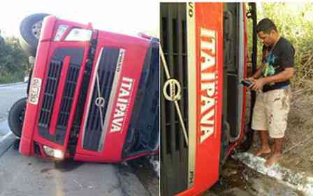 Uma carreta carregada de cerveja tombou na BR-101, próximo a ponte do Rio Jequitinhonha, no município de Itapebi, no final da tarde desta terça-feira (21). Houve confusão na pista, pois uma multidão se aglomerou no local para saquear a carga. Algumas garrafas de cerveja explodiram e os estilhaços de vidros machucaram vários saqueadores. De acordo com populares, o condutor do veíc
